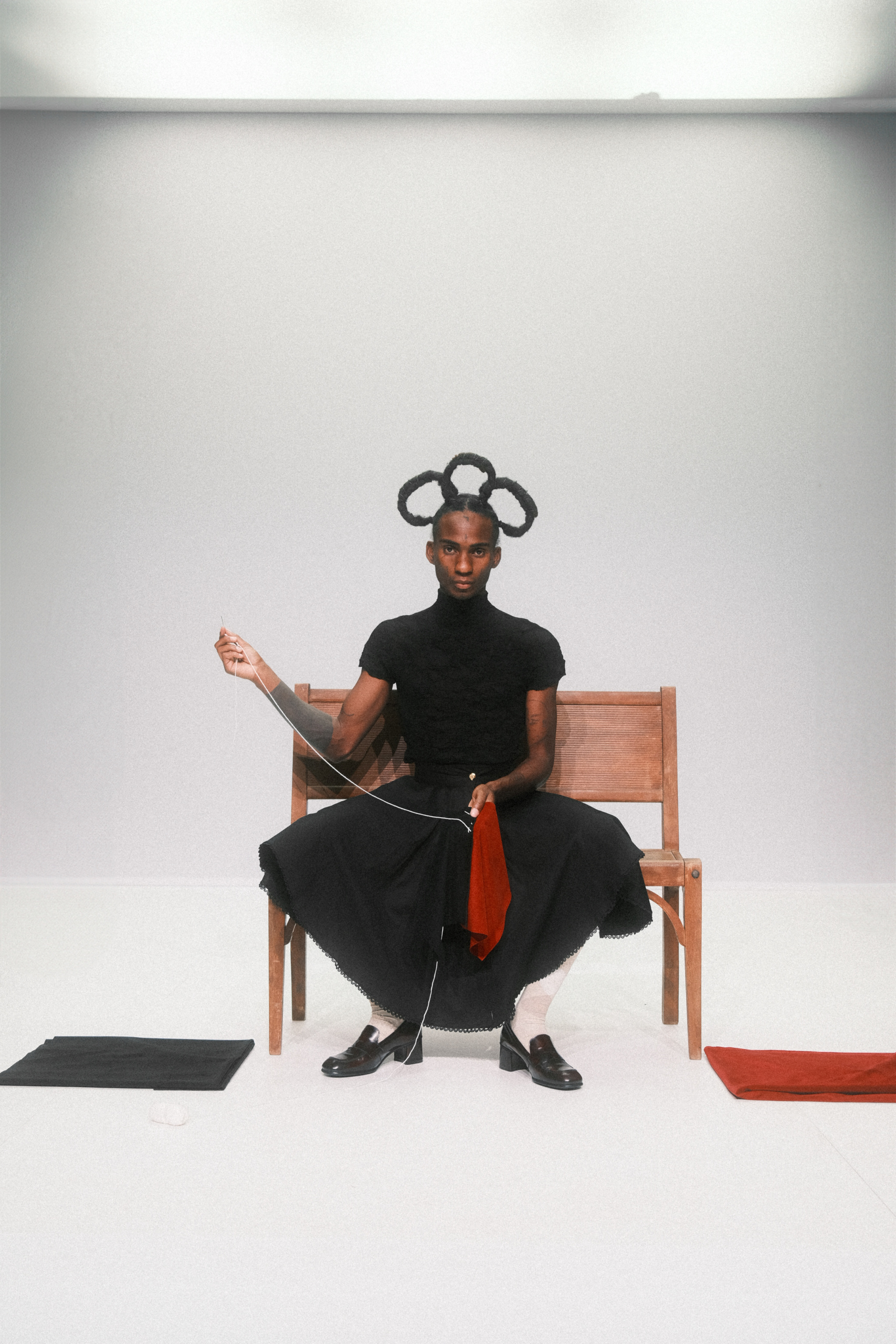 “When I say Autothérapie, “Self-Therapy”, i’m not talking about healing myself alone. I mean diving into my own body as if it were an archive, marked, crossed through, inhabited by others. I’m not alone. I carry my dead, my loved ones, those I hold close, and those I couldn’t protect. The “auto”, the “self” is a shared self, shaped, fractured, and filled by others.” Mackenzy Bergile
